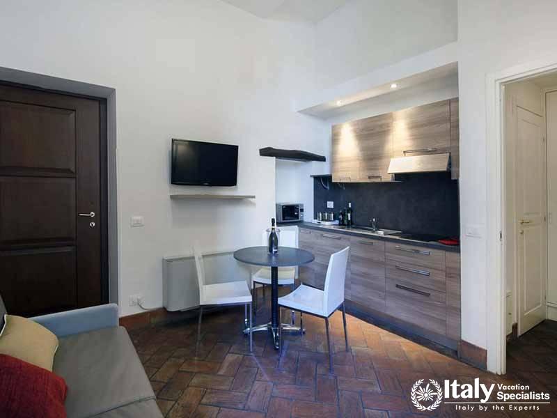 This 32 sqm apartment evokes a sense of hospitality and luxury thanks to a mixture of natural and modern materials such as precious furnishing fabrics and exclusive accessories, where the overall effect is an ethereal sense experience. The sheets of a fresh white, soft duvet and luxurious amenities Ambrusca of the Molton Brown London product line help to comfort the body and soul. This apartment also has a comfortable sofa bed for 2 guests. They can have an interior balcony or courtyard view.