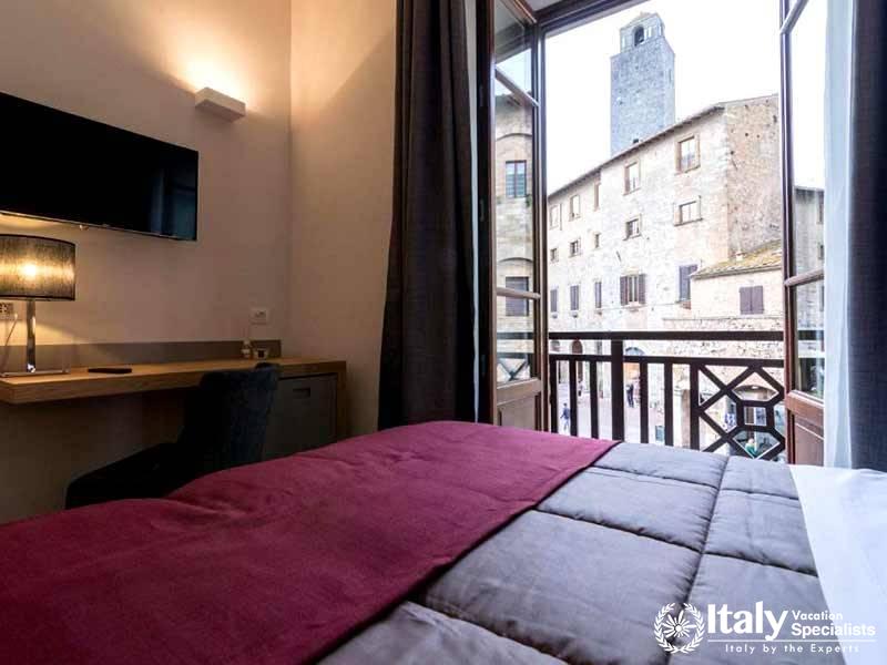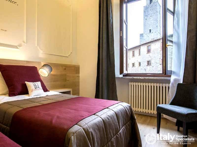 The majority of the rooms at La Cisterna have views of the Piazza or the lovely Tuscan countryside. Each room is decorated in the Florentine style.