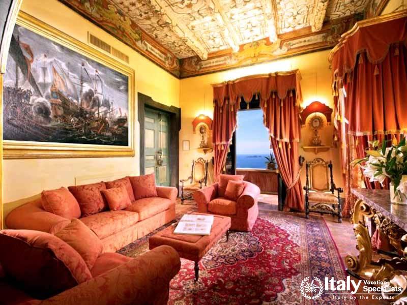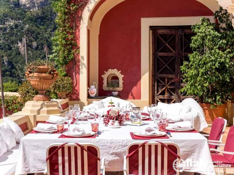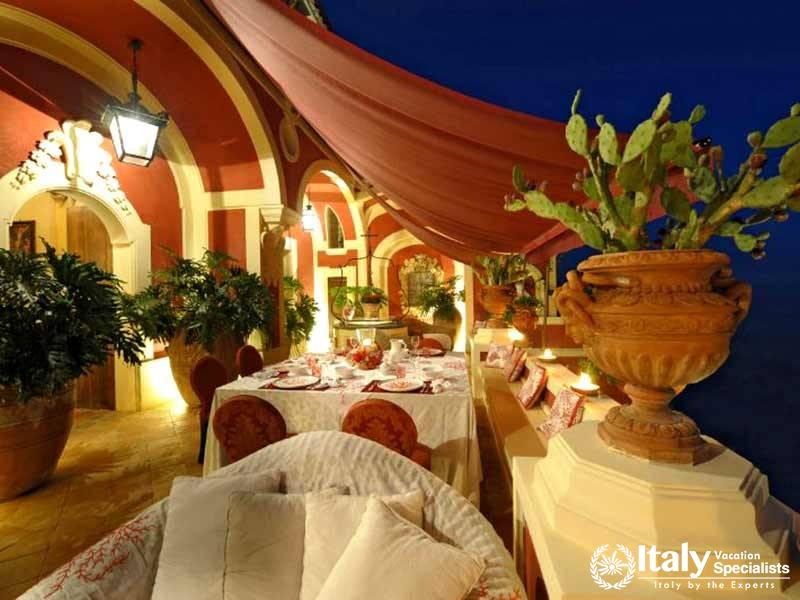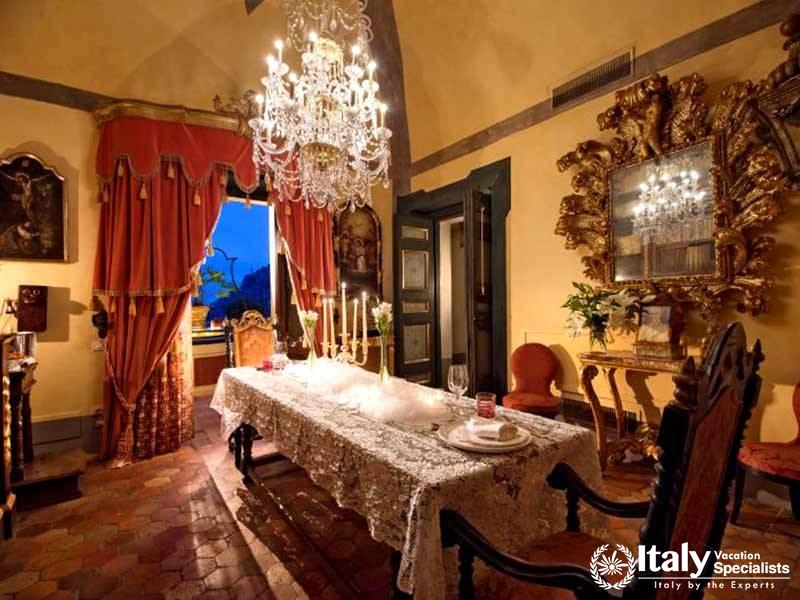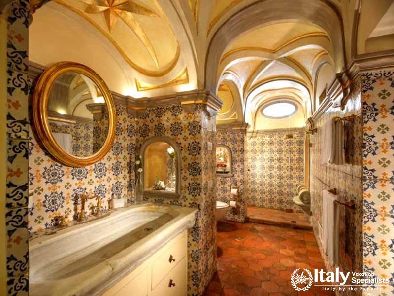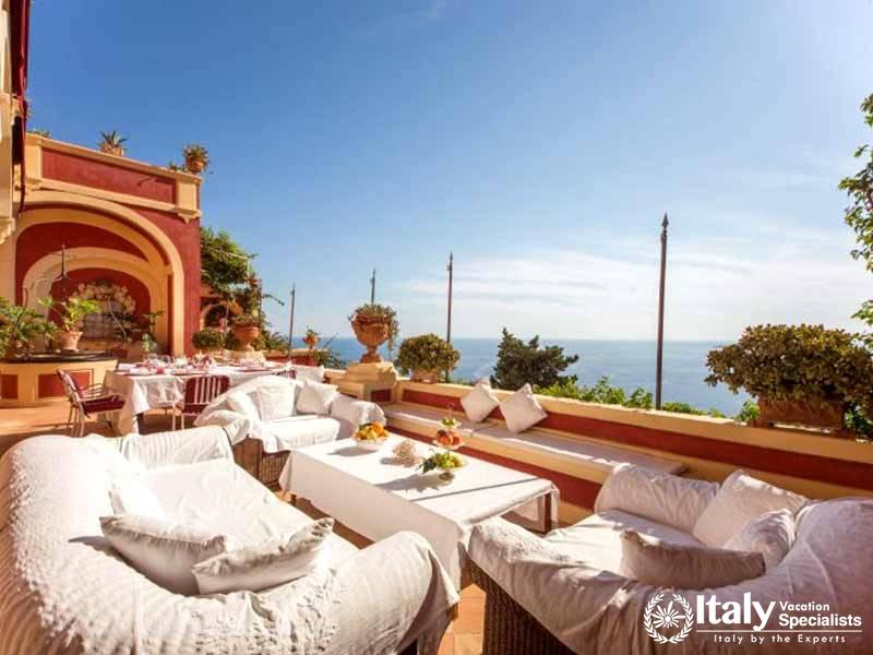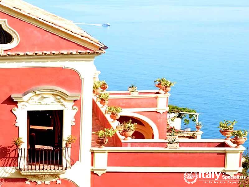 The villa's strategic position, hugging the world famous Amalfi cliffs, is the best you'll find in the entire area and can be enjoyed during meals on the family sized panoramic terrace. Guests can either choose to prepare meals in the spacious cooking area or relax in complete comfort while a professional chef prepares delicious Italian family meals with local products. Each room dawns it own unique layout, all of which keep to the most elegant Italian Baroque style that has been the theme since way back in the 1700's. Recent renovations only added to the ancient splendor, meaning it will remain a prestigious holiday residence of the highest quality for many more years to come.