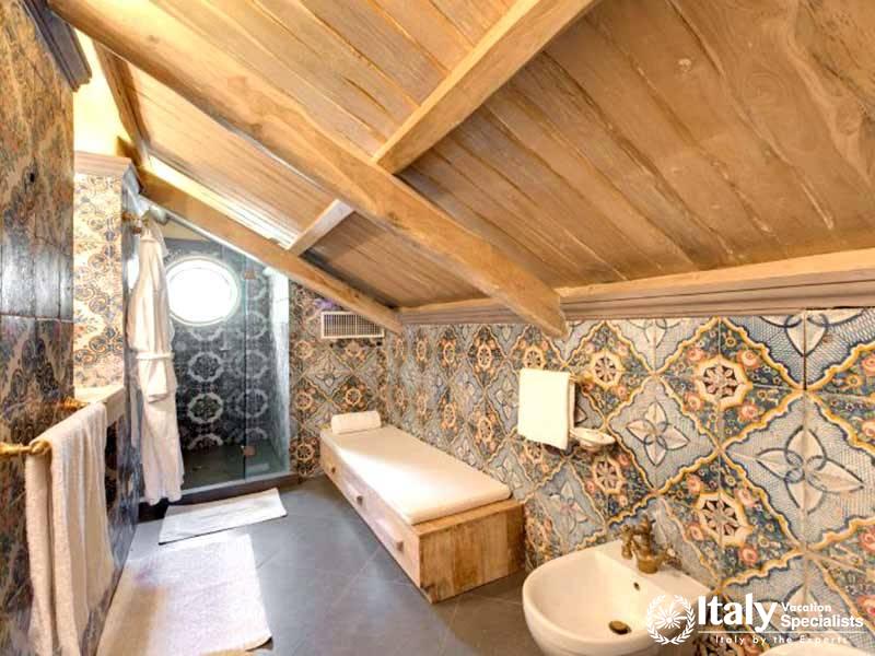 One of the most enchanting aspects of staying at the villa Dimora Vesuvio is the private spa. Take advantage of the exclusive Turkish bath, sauna and a beautiful indoor swimming pool (8 x 3m). The spa is connected to the outdoor terrace where you will find your very own whirlpool bathtub.