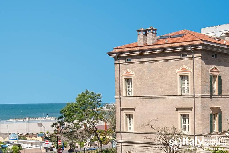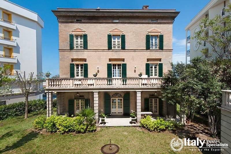 Villa Alessandrini is situated along the seafront promenade, the most exclusive part of the town, and directly overlooks the beach, in front of the bathing establishments.
