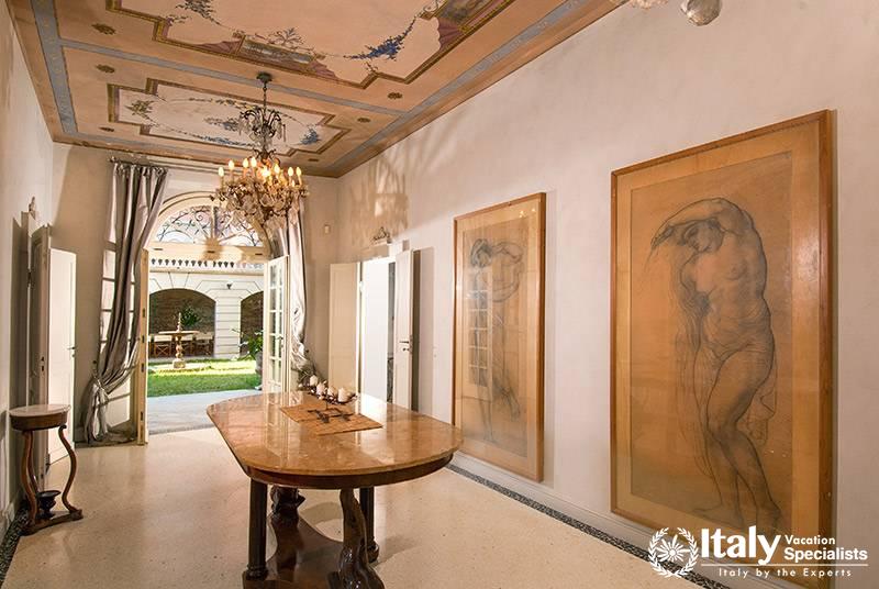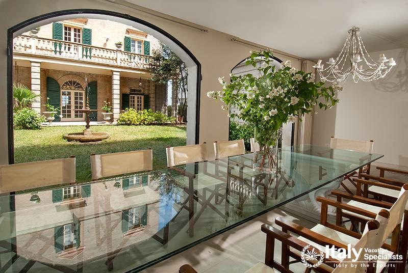 It was built in 1895 as a holiday home for an aristocratic family from Bologna. The recent renovation work has maximized the villa’s rare architectural features. It is distributed over four levels with spacious indoor and outdoor areas and has a beautiful view of the sea. The furnishings are of high quality and the villa has all mod cons: air conditioning, except on the lower floor, WI-FI internet, large covered car park, well-equipped kitchen, large indoor and outdoor dining areas.