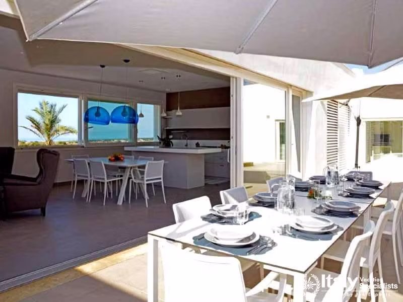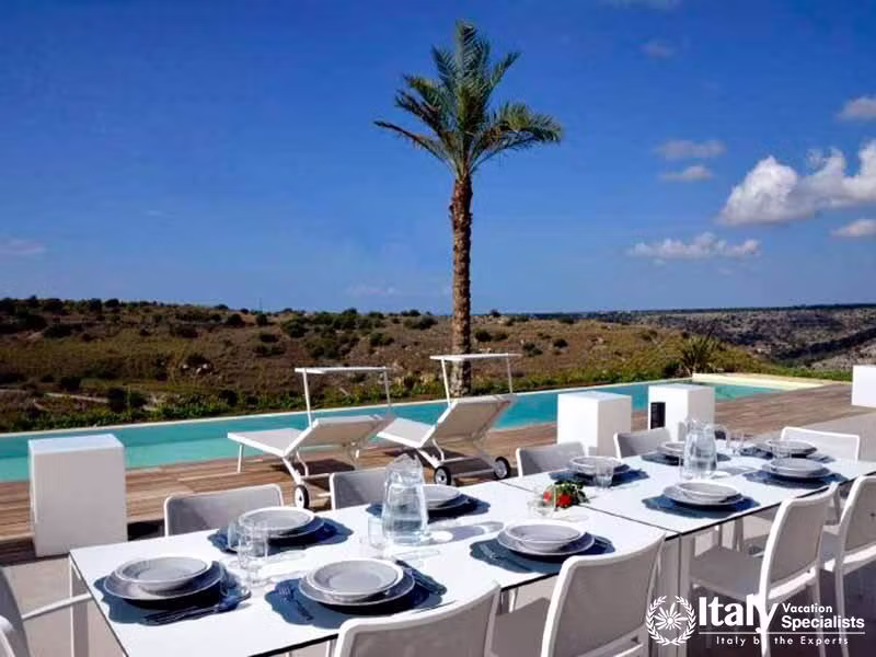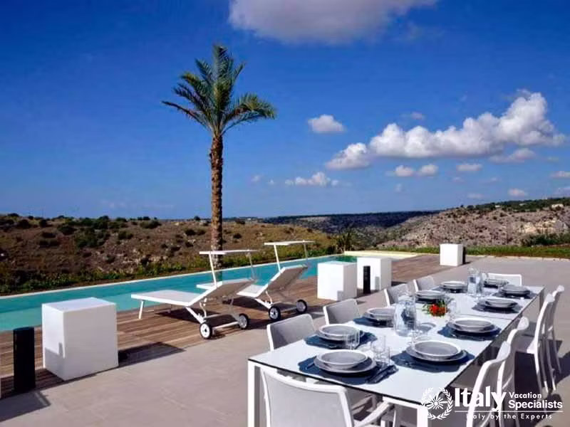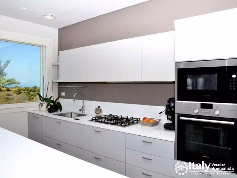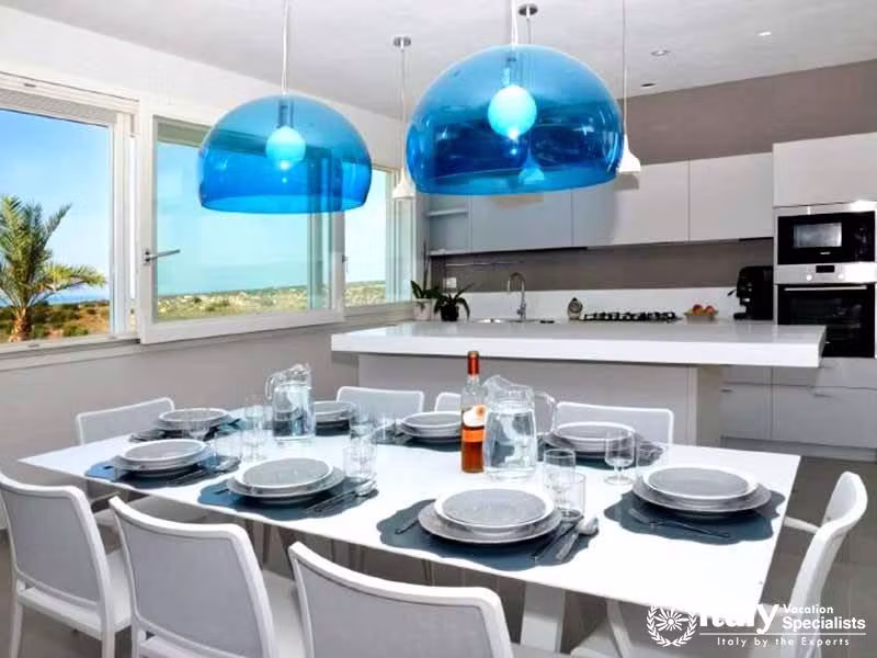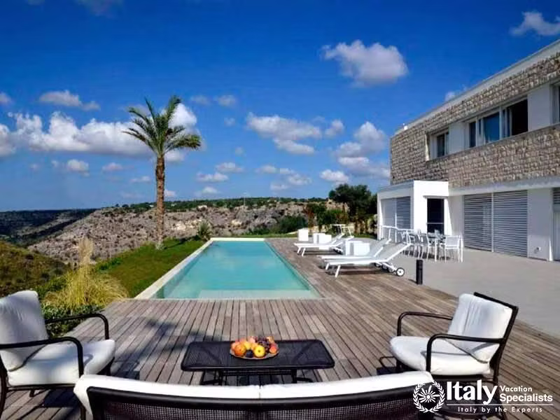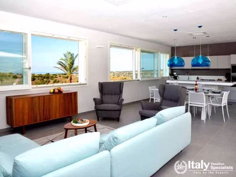 This impressive villa offers maximum levels of peace and comfort. Located on one of the hills close to Scicli, it offers amazing views from the villa that slopes down to the sea which is visible within the background. Like the outside structure the interior of the villa on the first floor, which is the portion we are proposing, is advanced and rich, and the amenities, which includes air conditioning and a fully equipped kitchen, are rich and complete. The ground floor contains the premises which can be utilized by the proprietors for holding professional courses.