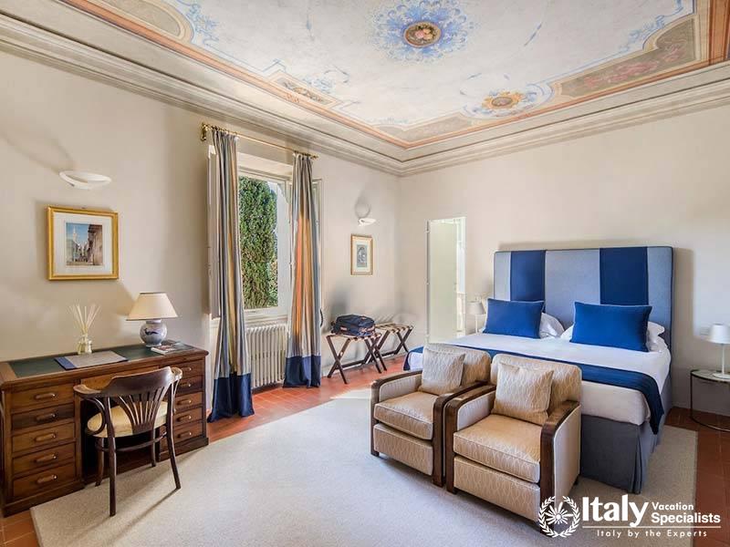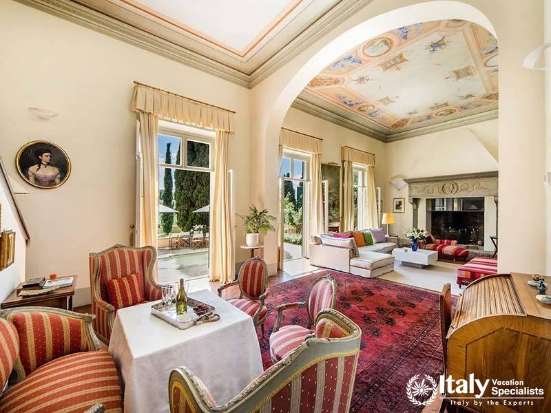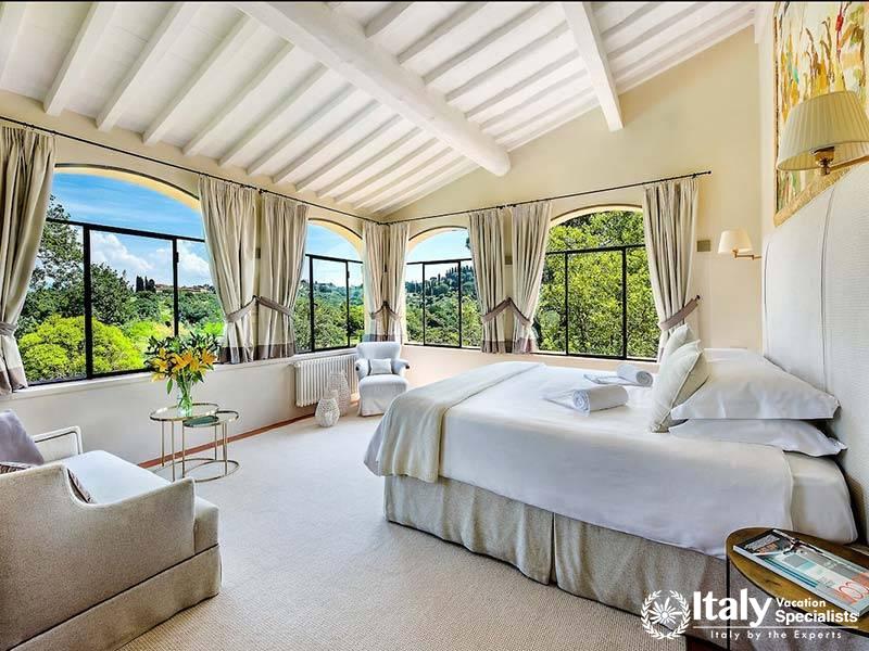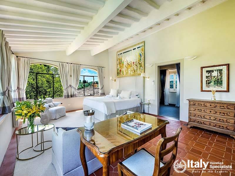 With each bedroom suite offering a sanctuary of its own, the second floor of Villa Fiori d'Arte ensures that every guest's stay is marked by serenity and luxury. The careful arrangement of living spaces and private areas allows for both communal experiences and personal retreats, all within the comfort of this magnificent Tuscan villa.