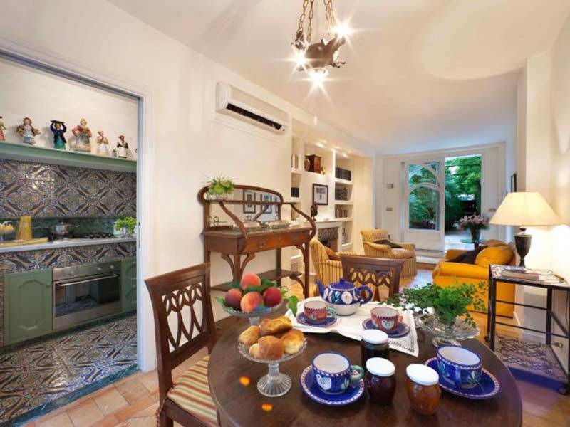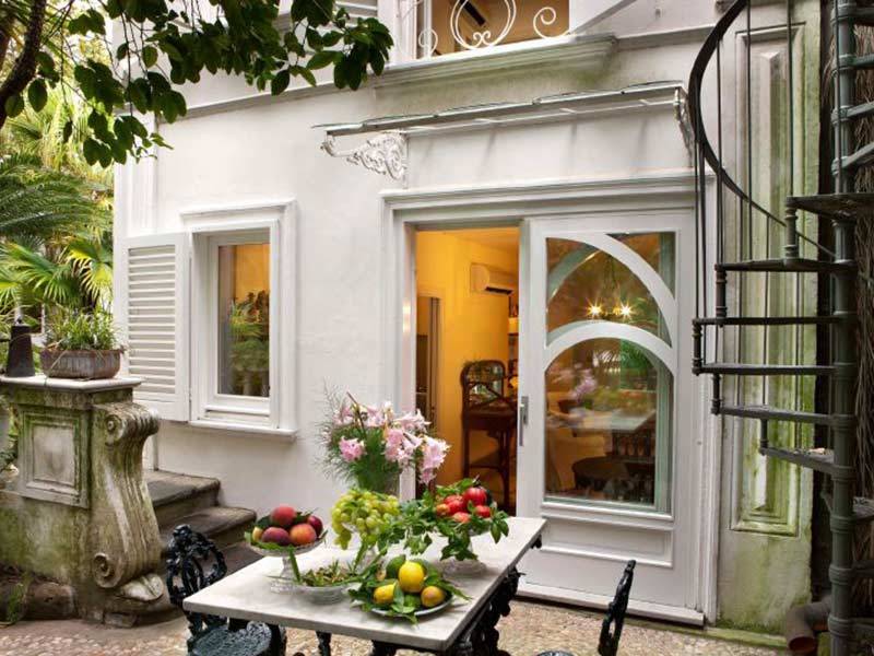 Villa Stella is the Liberty style annex of a well-known villa on the Sorrento Coast, immersed in a large garden with palm-trees and camellias, mentioned in several books about historical gardens in the area. The annex is in a position on its own and independent from the villa where the owners live who, incidentally, are delightful people, always ready to help if asked, speak English well and know how to respect your privacy. The furnishings consist of comfortable, valuable furniture, very well-thought out even in the smallest details, from the choice of curtains down to the layout of the bathrooms. The annex is equipped with air-conditioning and central heating, stereo with CD player, TV, WIFI internet connection as well as dishwasher in the kitchen and washing-machine. Outside, guests have the use of their own private area furnished with table and chairs for dining “al fresco” and a sun-bathing terrace protected by vegetation. The beautiful garden has a swimming pool (10 x 10 m) for guests which is also very occasionally used by the owners. The property is in a residential area of Sorrento where some of the best-known hotels are also located. About 100 m away there is a lift/elevator down to the sea, which leads to the well-equipped beach resort. Before your arrival, it is also possible to arrange to use the pay car-park situated nearby. Your stay includes a few hours of compulsory midweek cleaning which you will have to pay for at the end of your holiday. Sorrento is in an excellent position for visiting the Amalfi Coast. Positano is about 17 Km away, Amalfi 30 and, with the hydrofoil, you can reach Naples in about thirty minutes.
