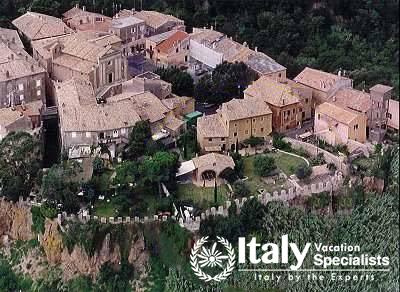 Ceri is a gorgeous medieval town situated in a beautiful position between sprawling valleys offering 365 degrees over the gorgeous landscape dotted with farms. This is a popular town for Romans to come to on the weekends, close enough to the city but a world away with fine dining options which often include the typical Roman red and white wiines as well as local products from the area.