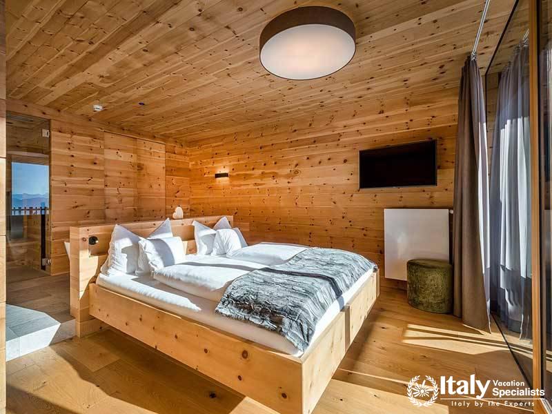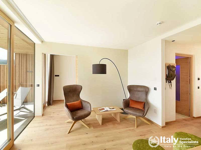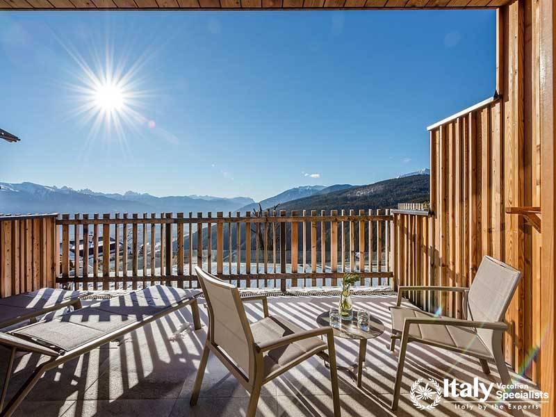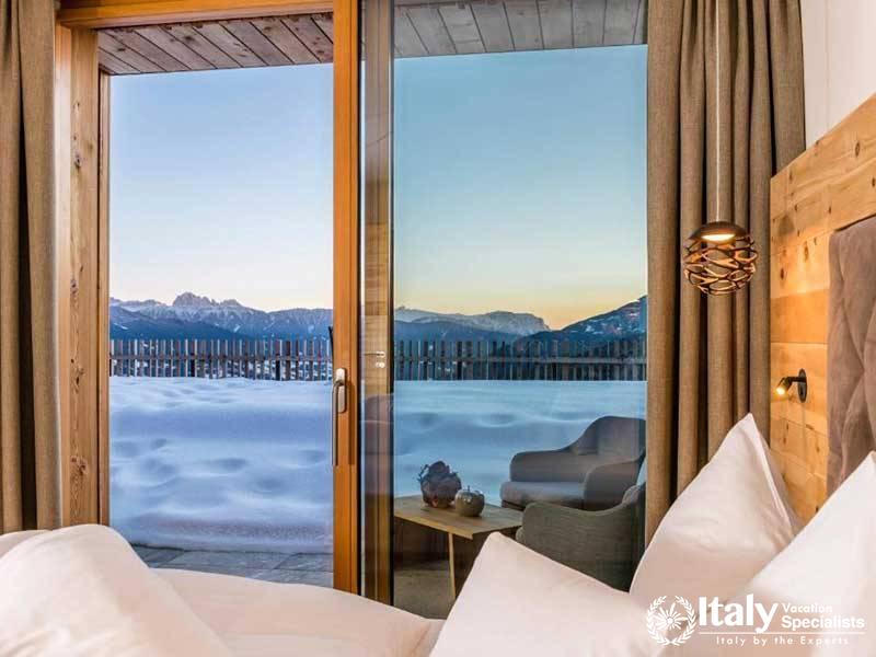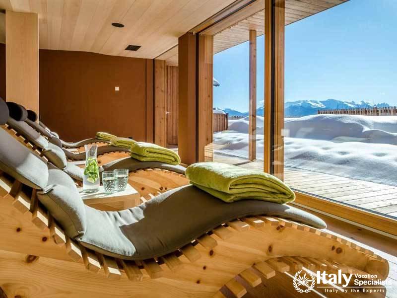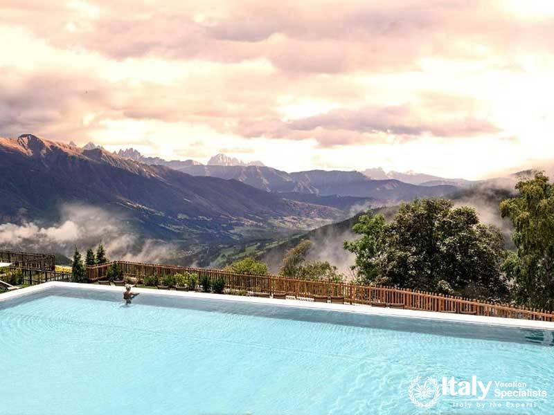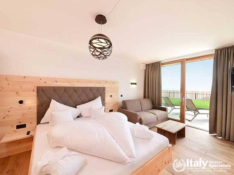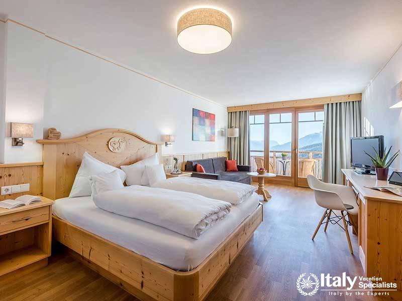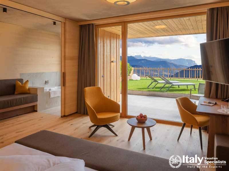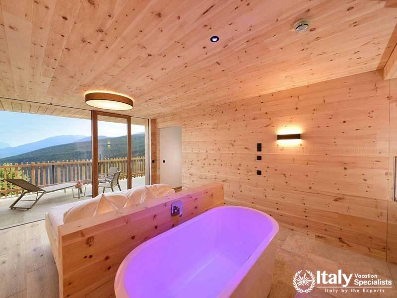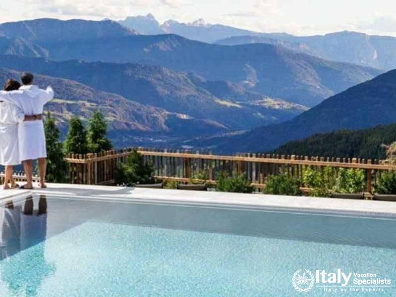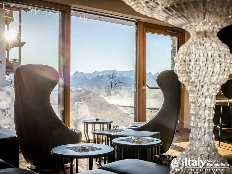 Each morning at the Tratterhof Mountain Sky Hotel, a full English and continental breakfast is served. The restaurant also offers a 5-course dinner including Mediterranean fare.