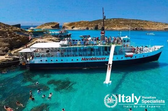 After breakfast in hotel, our driver will pick you up for another day of excursion in the Maltese archipelago.You will be accompanied to Bugibba, where you will board on a comfortable boat for a fantastic mini cruise! You will sail through the north of the Maltese coast to the island of Comino and you will stop at the famous Blue Lagoon for about an hour. You will have time to take some pictures, sunbathe and have a swim in the turquoise waters of the bay or if you prefer, you can relax in the bar of the boat which is equipped with all sorts of drinks and snacks.