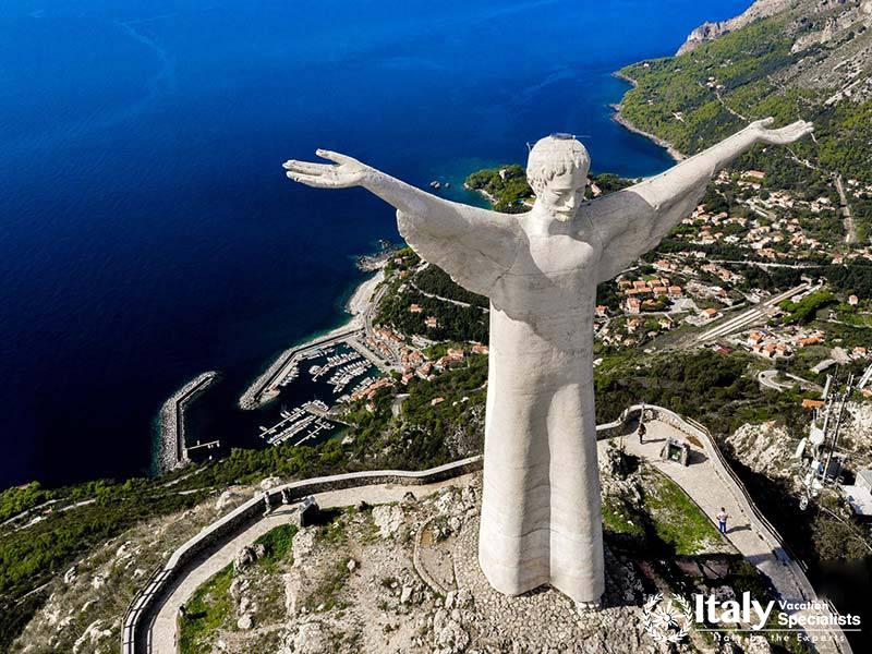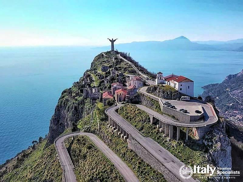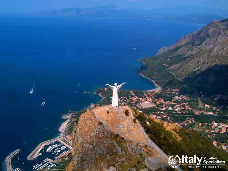 Afterwards, you'll ascend to visit the majestic statue of the Cristo Redentore, perched high in the mountains. The journey continues to the charming town of Maratea, nestled on the border between the Basilicata and Calabria regions.