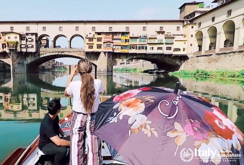 The tour starts with a walk through Piazza Signoriaa and passed the Uffizi Gallery with your guide, to reach the river where you will board a barchetto, one of the traditional Florentine boats, for a unique experience. Similar to a gondola, the barchetto has no engine creating a peaceful, romantic atmosphere as the barcaiolo steers the boat along the river with a long pole, and the guide explains the buildings and bridges that you are passing.